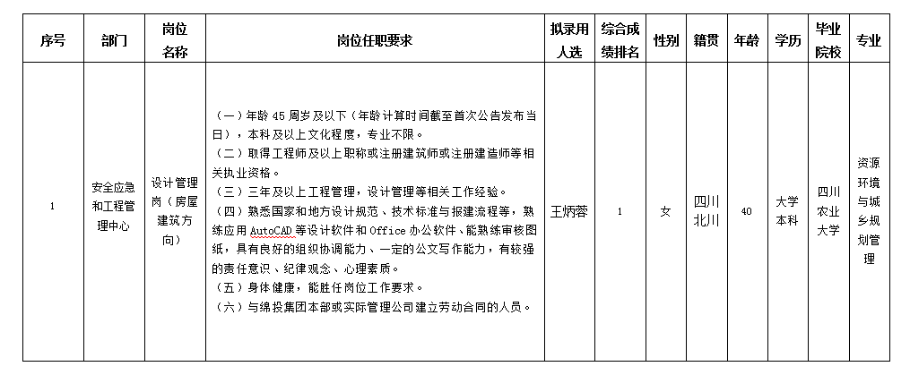 根据bat365中文官方网站官网发布的招聘公告及招聘相关规定,经笔试、面试、背调等程序,拟录用王炳蓉同志到bat365中文官方网站官网工作,现予以公示,具体情况如下: