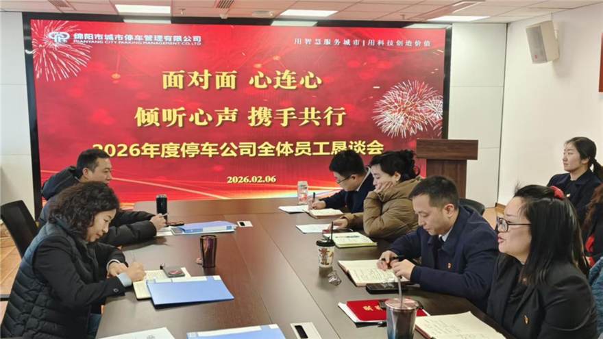 为广泛听取一线声音、凝聚集体智慧,科学谋划2026年工作,近日,停车公司召开新春全员恳谈会。公司领导班子、各部门负责人及一线岗位员工参加。