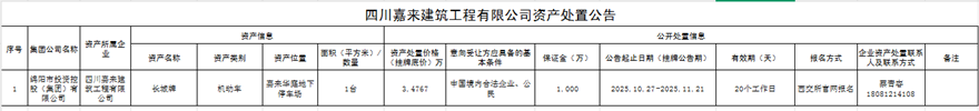 四川嘉来建筑工程有限公司资产处置公告
