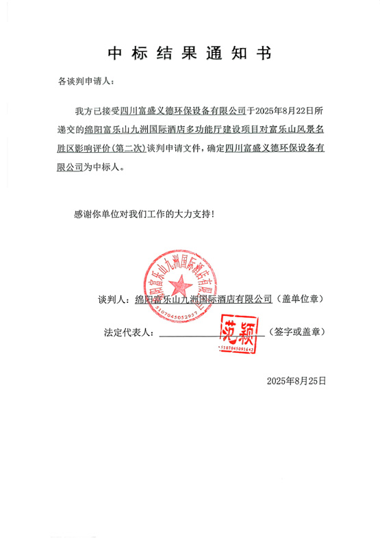 绵阳富乐山九洲国际酒店多功能厅建设项目对富乐山风景名胜区影响评价(第二次)中标结果通知